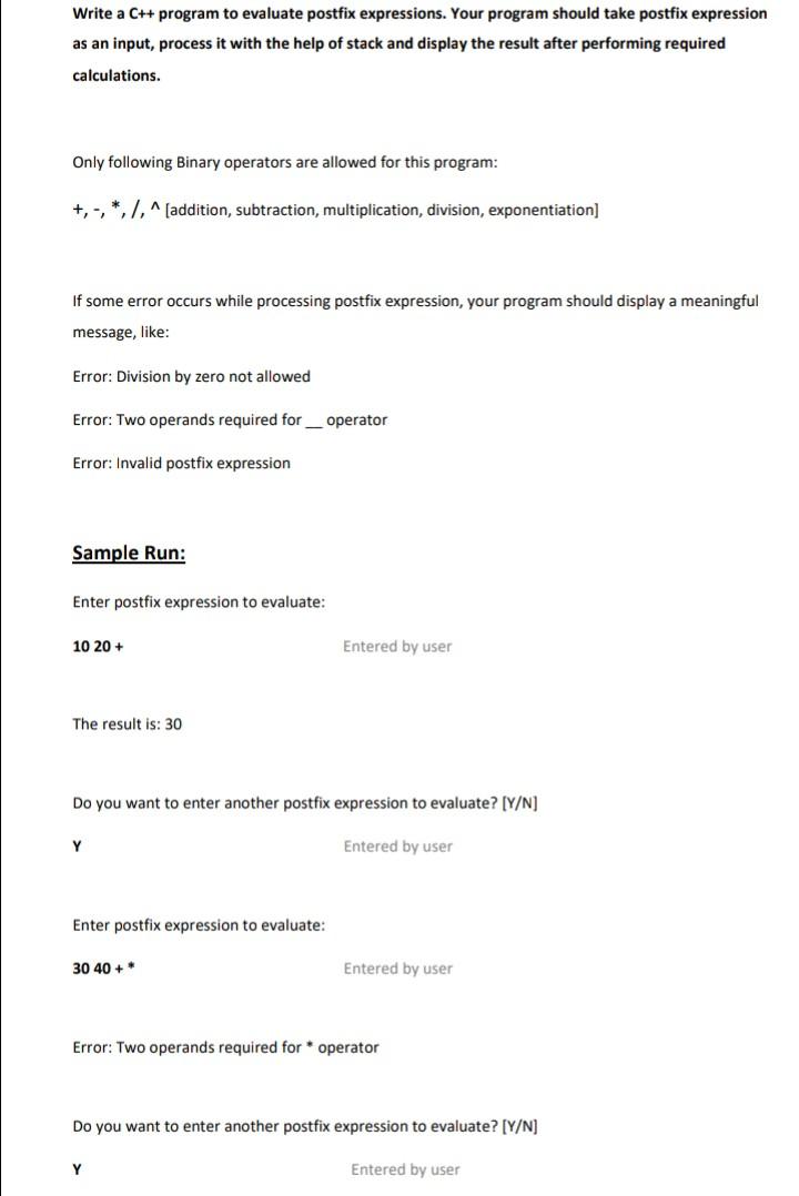 Write A C Program To Evaluate Postfix Expressions Chegg Com